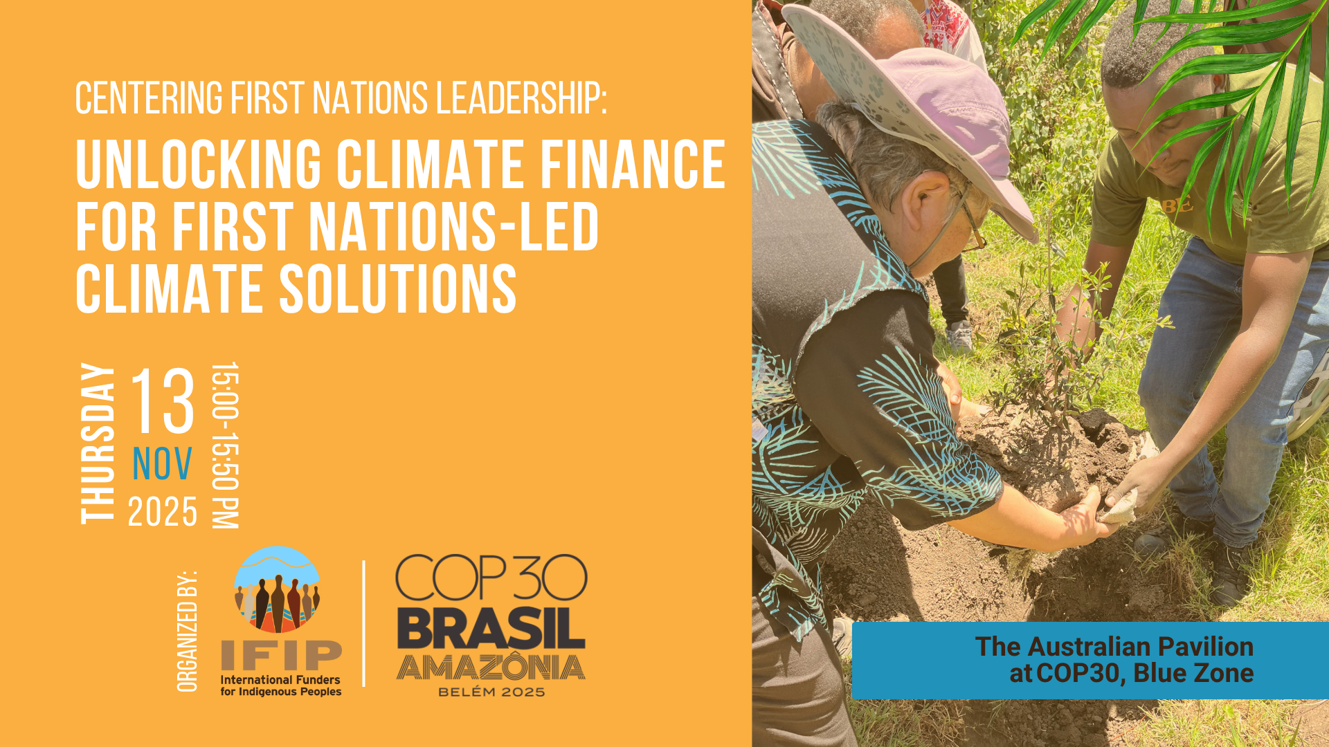 Join us at the Australian Pavilion for a session highlighting how First Nations leadership is shaping inclusive and effective climate finance. Hear from Indigenous leaders driving transformative, community-led climate solutions in Australia and beyond.